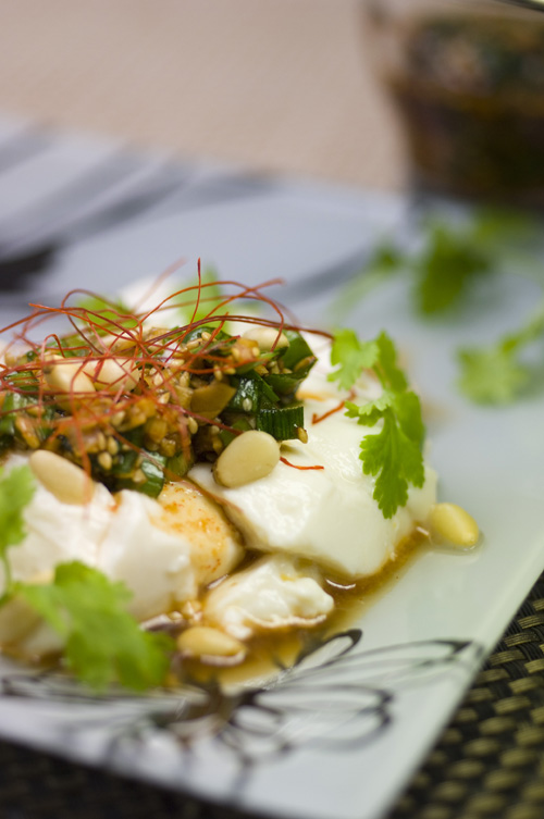 て、よくすり混ぜる。じっくり煮た『こんこん』と野菜を形良く盛りつけ、ごま油少々を
