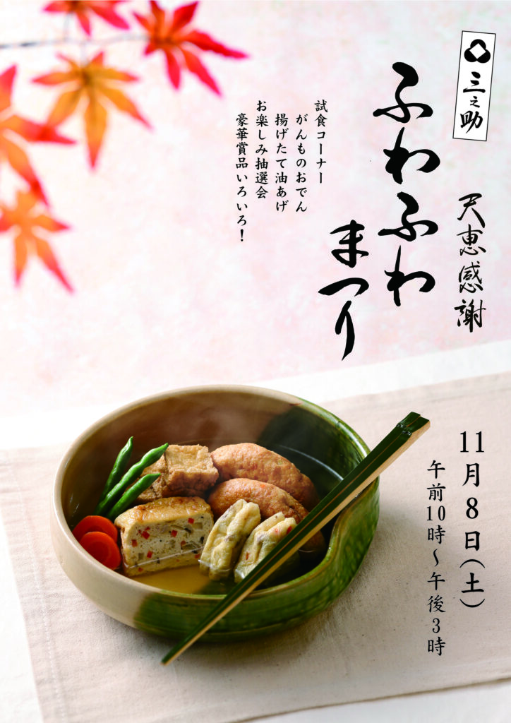 「ふわふわまつり」では、弊店おすすめの豆腐や揚げ物を、当日限りの特別価格にてご用意いたします。ぜひこの機会にお試しください。