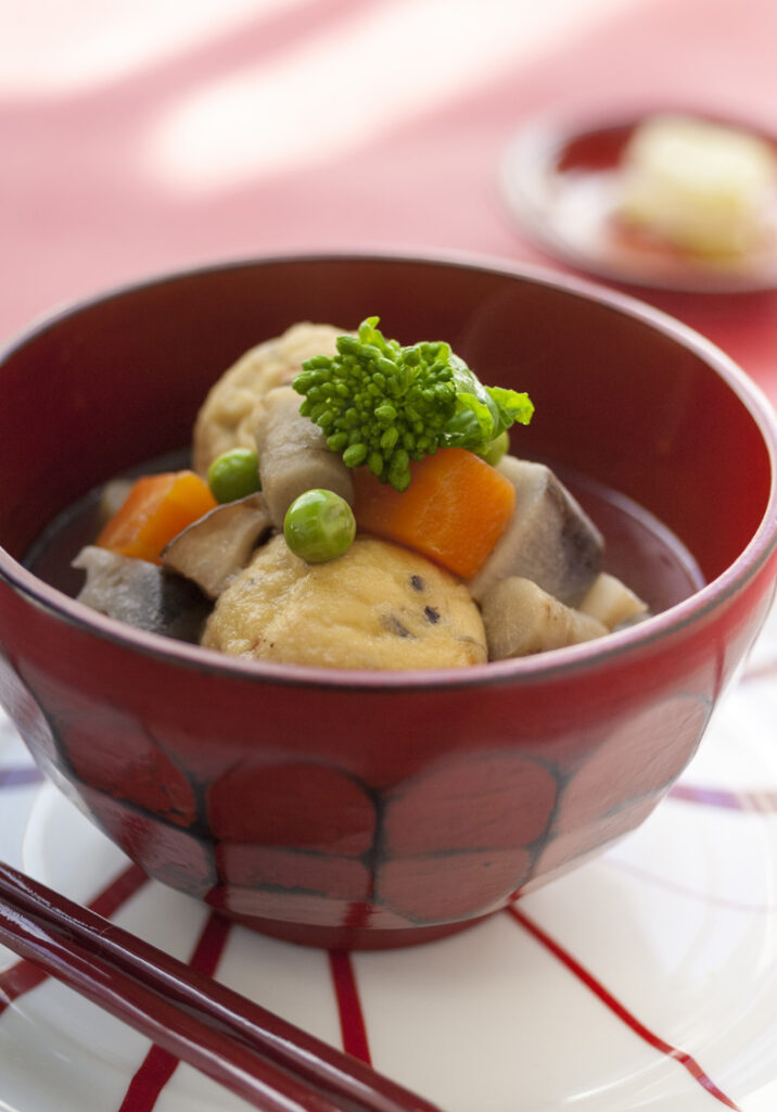 2.京がんもとかぶを加え、さらに2~3分煮て調味し、同量の水でといたくず粉を回し入れ、とろみをつける。